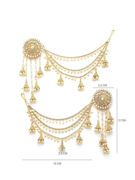Traditional Multi-Layered Design: This ear chain features multiple layers of pearls combined with classic jhumka earrings, offering an elegant and timeless Indian look.